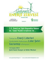 Gaziantep`te her yıl tekrarlanacak olan "Gaziantep Enerji Zirvesi", 14 Aralık 2012 Cuma günü Şehitkamil Kültür ve Kongre Merkezi`nde yapılacak.