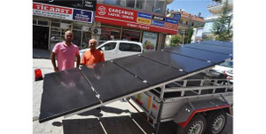 Antalya’nın Korkuteli ilçesinde bir müteşebbis, araç arkasına takılan römorka monte edilebilen seyyar güneş enerji paneli geliştirdi. Sistemle dağdaki çobanlar, telefon şarjı, aydınlatma, radyo dinleme ve televizyon izleme gibi ihtiyaçlarının yanısıra, orman gözetleme kulelerine, sondaj kullananlara ve bağevlerine elektrik imkanı sunulabilecek.