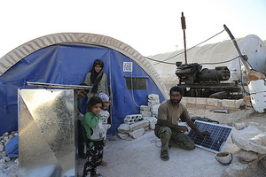 İç savaş nedeniyle evlerini terk etmek zorunda kalan Suriyeliler, Hatay sınırı yakınlarında kurulan çadırlarının elektrik ihtiyacını güneş enerjisinden temin ediyorlar.
